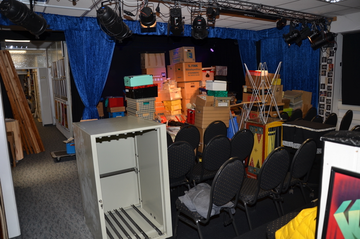 Die herausragende Tat war jedoch das Projekt Plakatraum: Ein Raum im Zauberzentrum, der vollgestellt war mit nicht bearbeiteten Sammlungszugängen, Manuskripten, Materialien und Kunststücken wurde komplett leergeräumt und alle Regale in diesem Raum wurden abgebaut. Das komplette Material wurde auf der Bühne zwischengelagert, wo es nun in der nächsten Zeit gesichtet, sortiert und zugeordnet werden muss. In dem Raum wurden zunächst vier große und zwei kleine Plakatschränke aufgestellt – ein echter Kraftakt. Doch es sollte noch besser kommen: Im Archiv der Sammlung standen noch zwei große Plakatschränke, die dann kurzentschlossen auch noch in den Plakatraum gebracht wurden. Und das war eine echte Herausforderung: Zunächst konnten wir die Schubladen nicht aus den Schränken entfernen, so dass der komplette Schrank transportiert und aufgestellt werden musste – dagegen waren die ersten Schränke wirklich leicht gewesen.