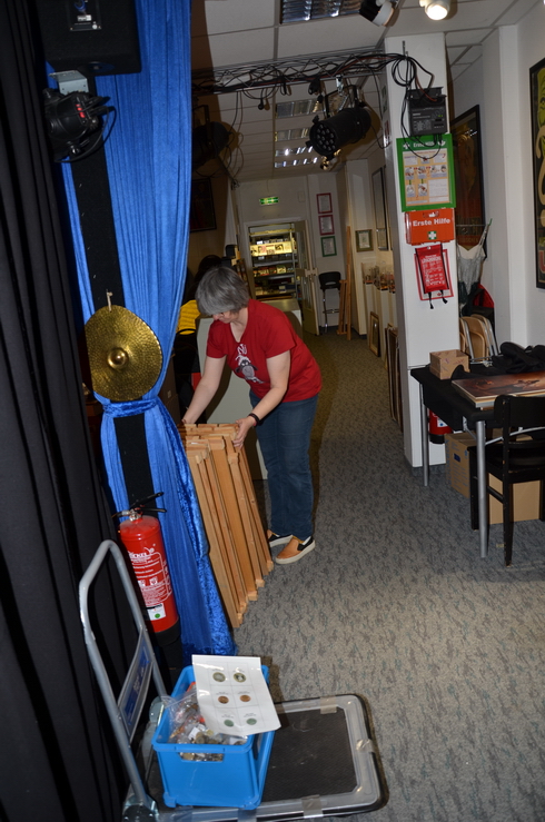 Der Plakatraum ist noch nicht ganz fertig, es fehlen noch eine Tischplatte und Regale, aber insgesamt waren sich alle einig, dass unser Plakatkurator Stefan Nagel dort nun einen wirklich guten und vor allem geeigneten Arbeitsplatz hat.