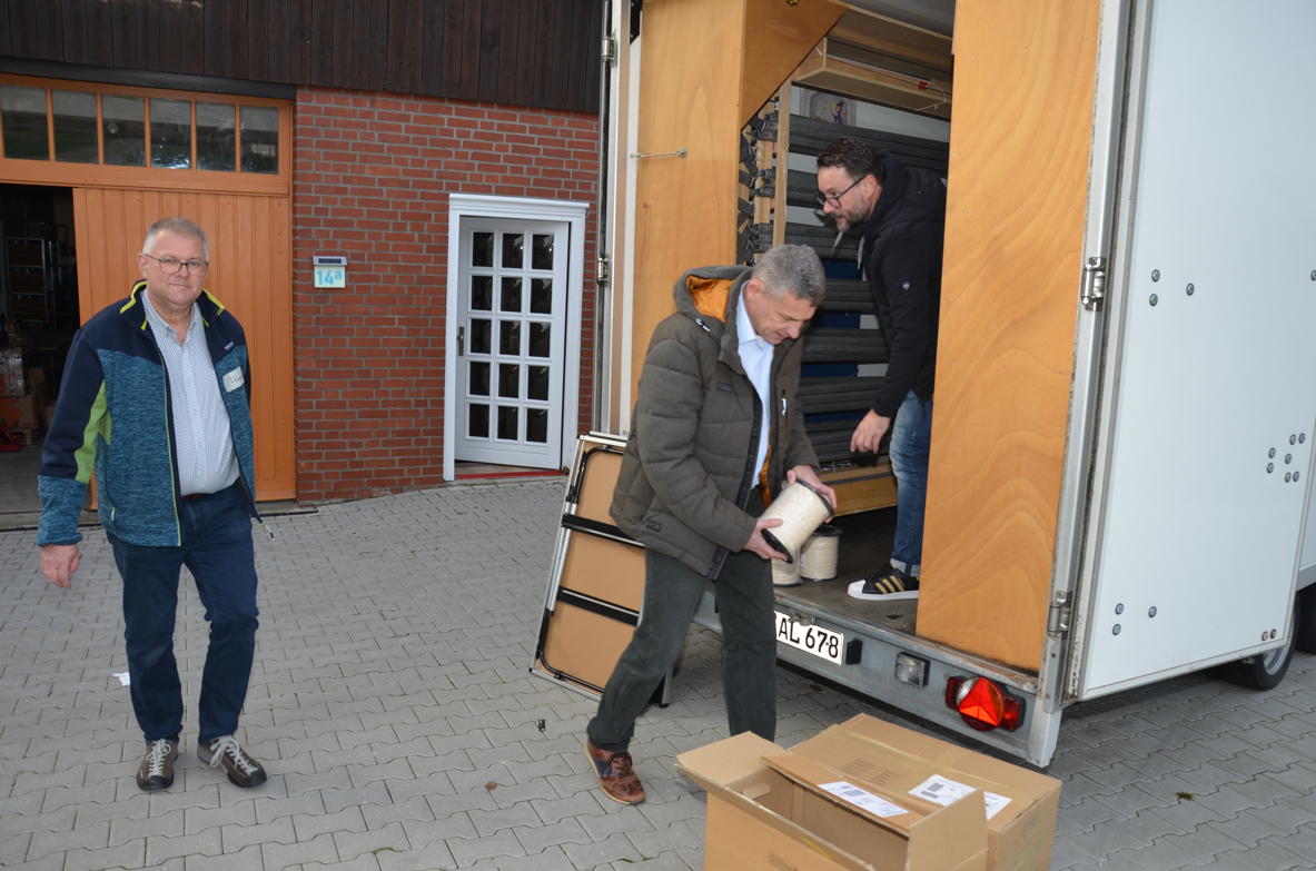 - ein großer Anhänger voll mit Material wurde ins Lager Schapdetten gebracht